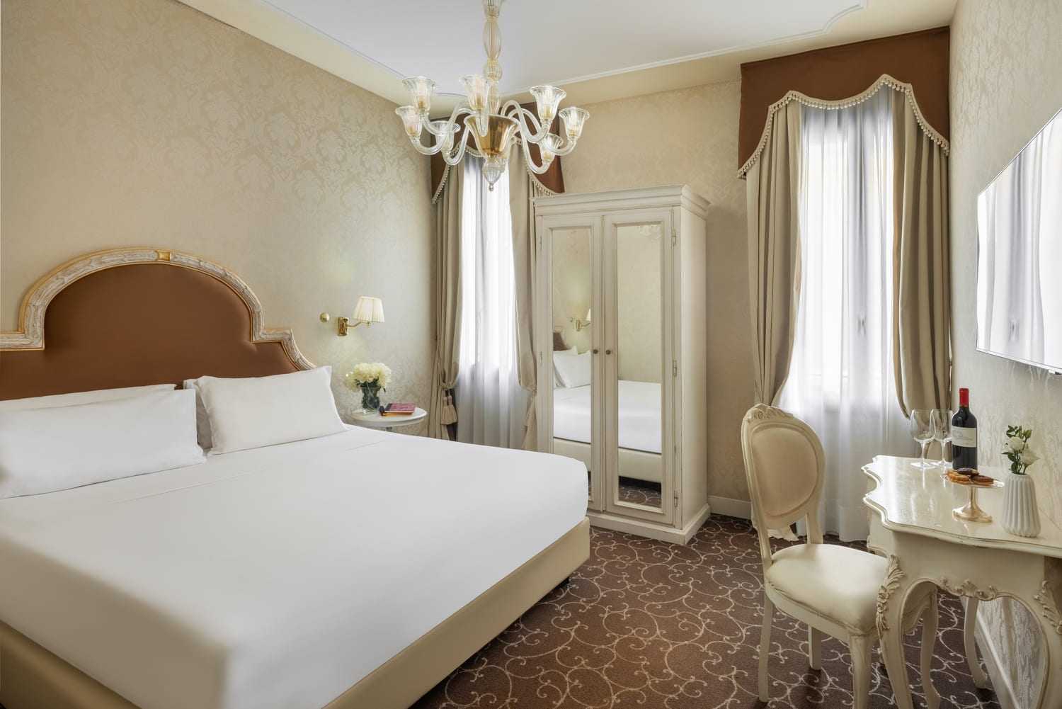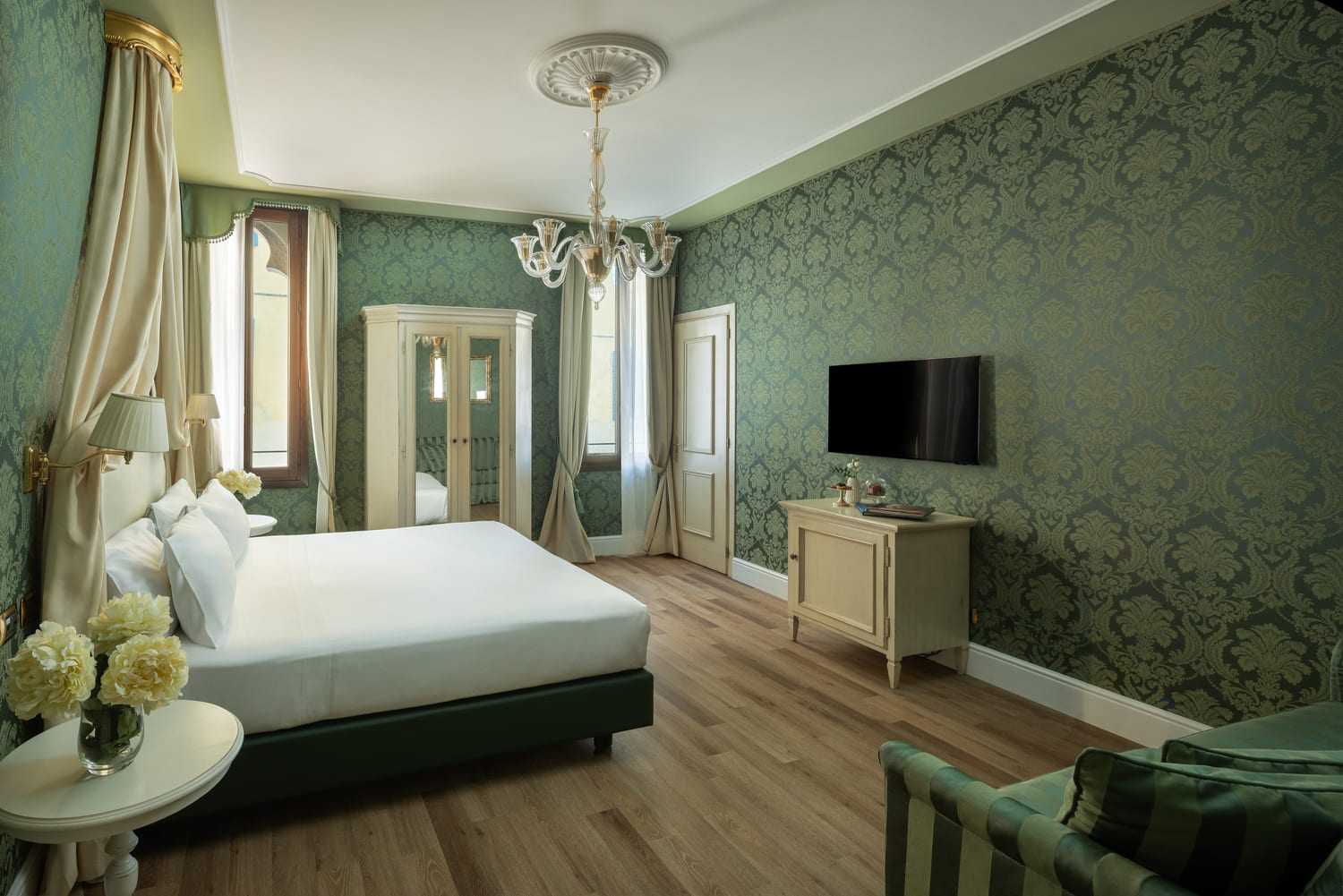 The 28 rooms and suites are designed to offer a unique stay experience, allowing guests to authentically breathe in the atmosphere of the city: the Murano glass chandeliers, walls, and textiles featuring traditional Venetian decorative motifs are all tributes to the timeless beauty of Venice and its enchanting canals.