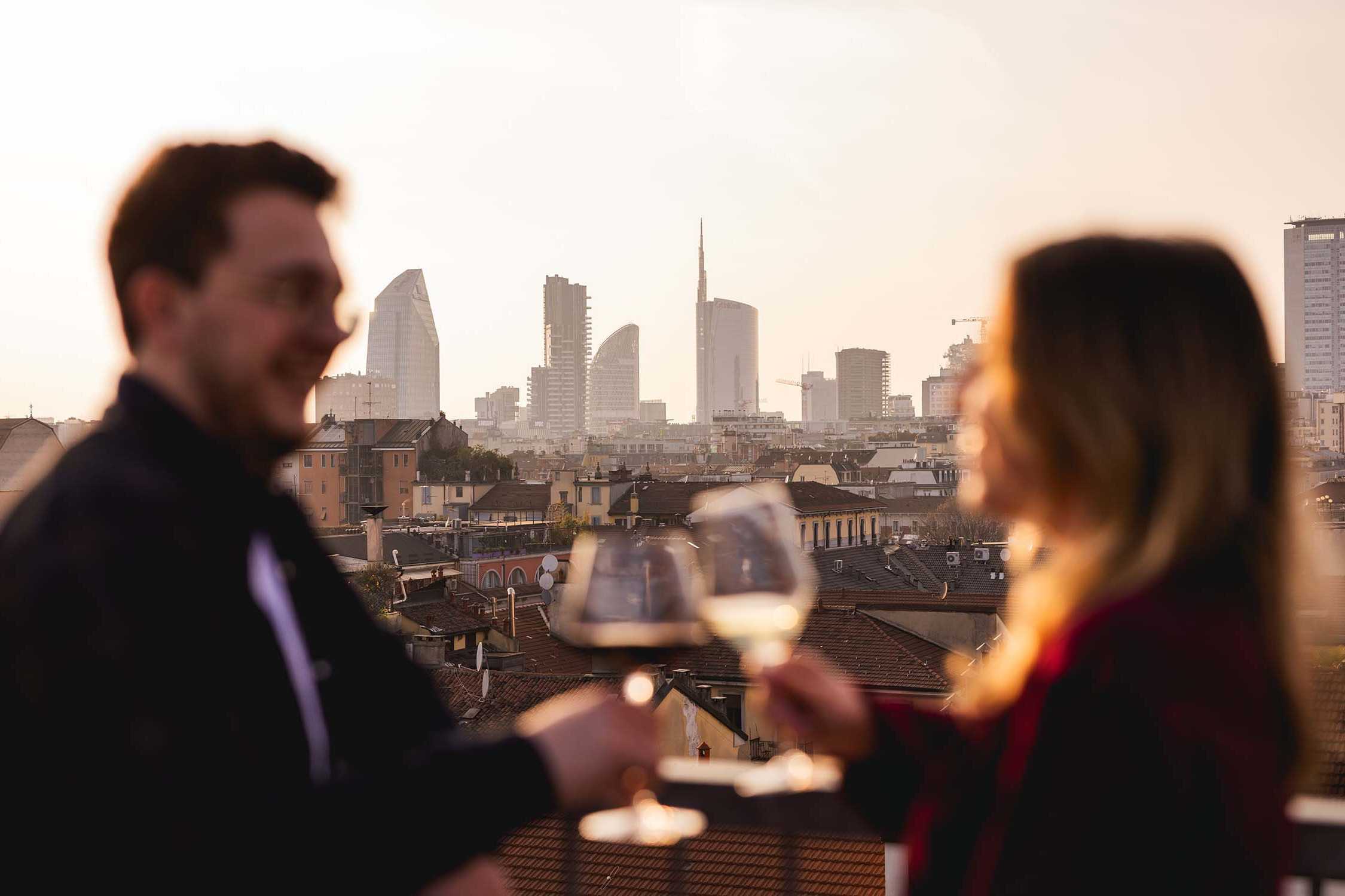 The new panoramic terrace offers a unique experience, with a breathtaking view of Milan’s skyline — perfect for a special lunch or for enjoying one of our cocktails, open weather permitting.