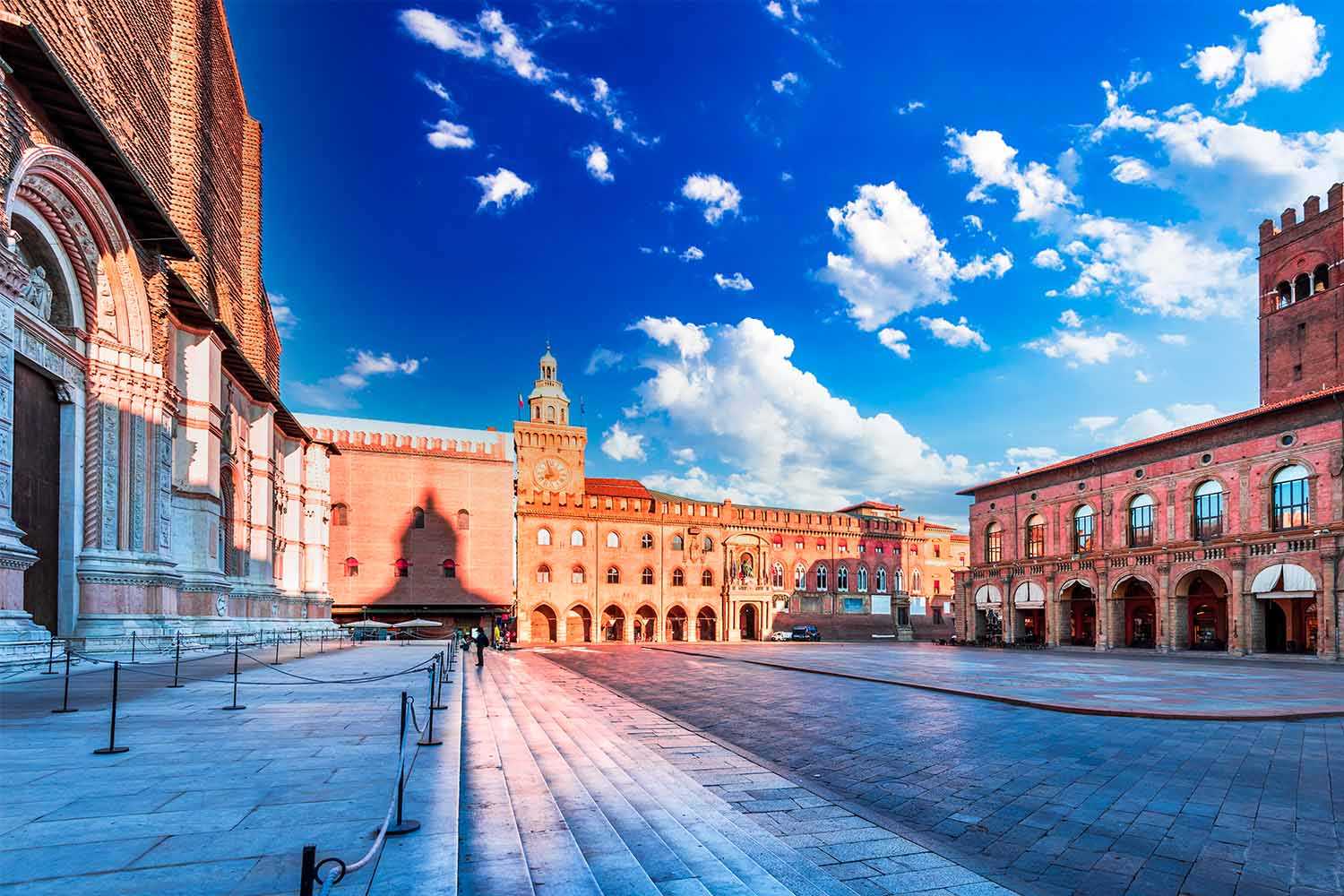 Piazza Maggiore, con la Fontana del Nettuno e la Basilica di San Petronio;