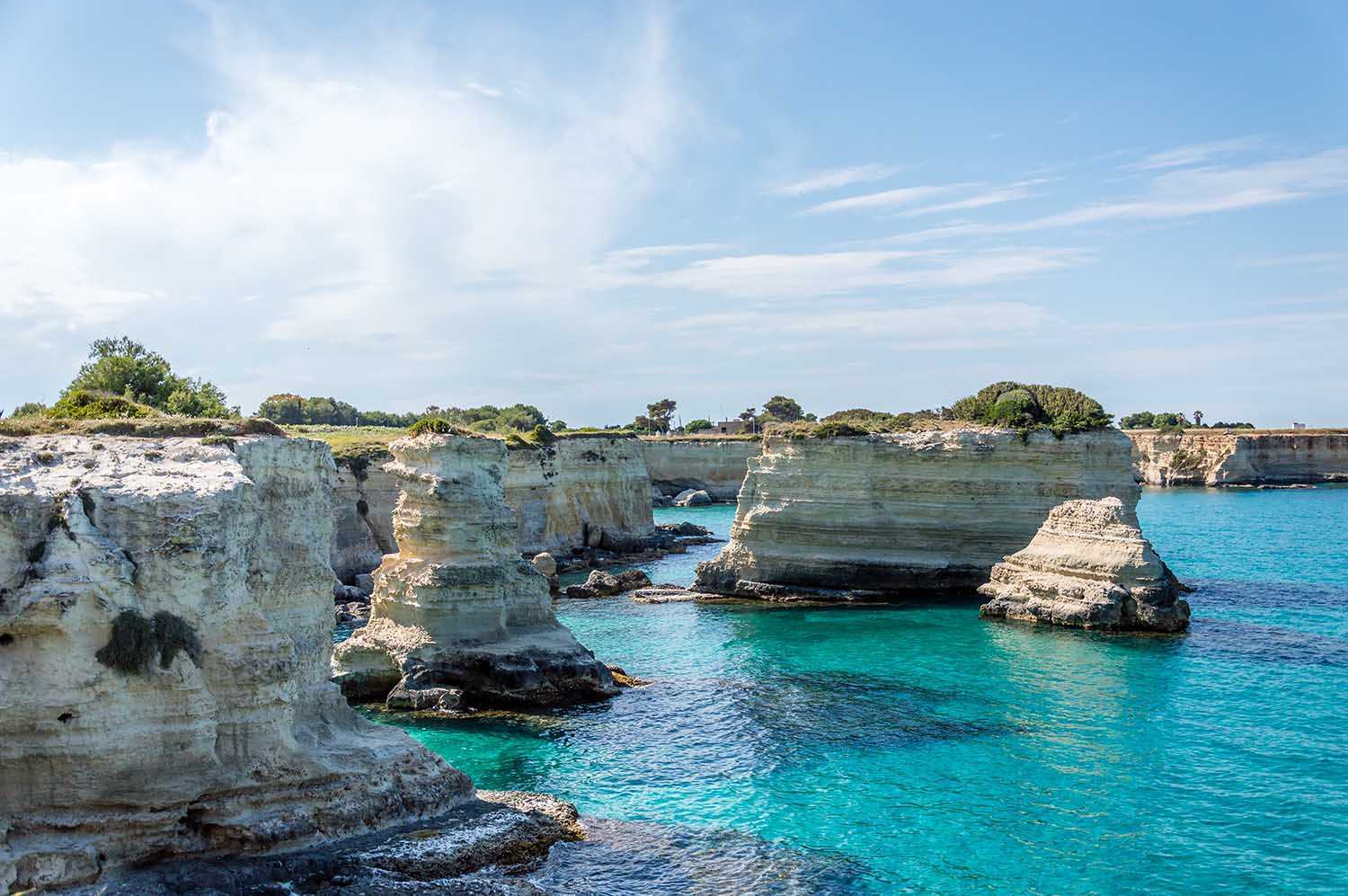 - Il Salento, con la sua lunga successione di spiagge di sabbia fine e un mare cristallino.